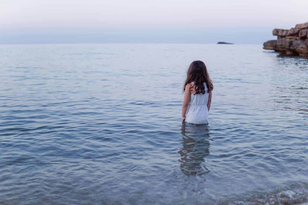 Beitragsphoto Mädchen im Wasser: Zhen Hu, Unsplash; Tora etc.:  Bild mit Tora, Büchern, Trommel: erstellt mit Dall-E 2; Hals: auf Pixabay; Mädchen-Portrait von Bessi, Pixabay